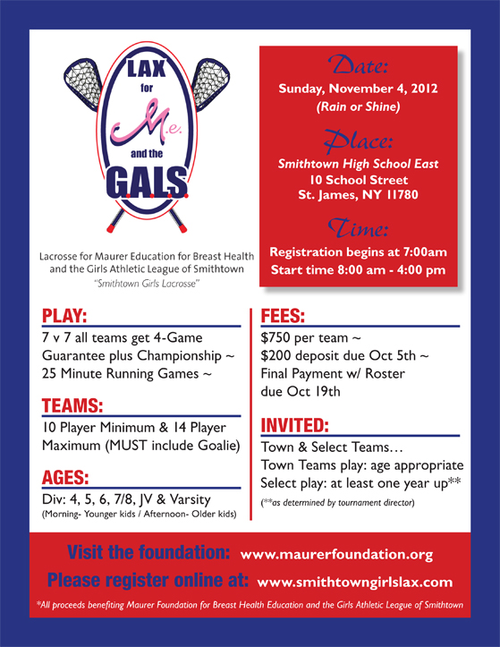 For tournament details check out the event flier below. To register your team for the event, visit www.smithtowngirlslax.com.