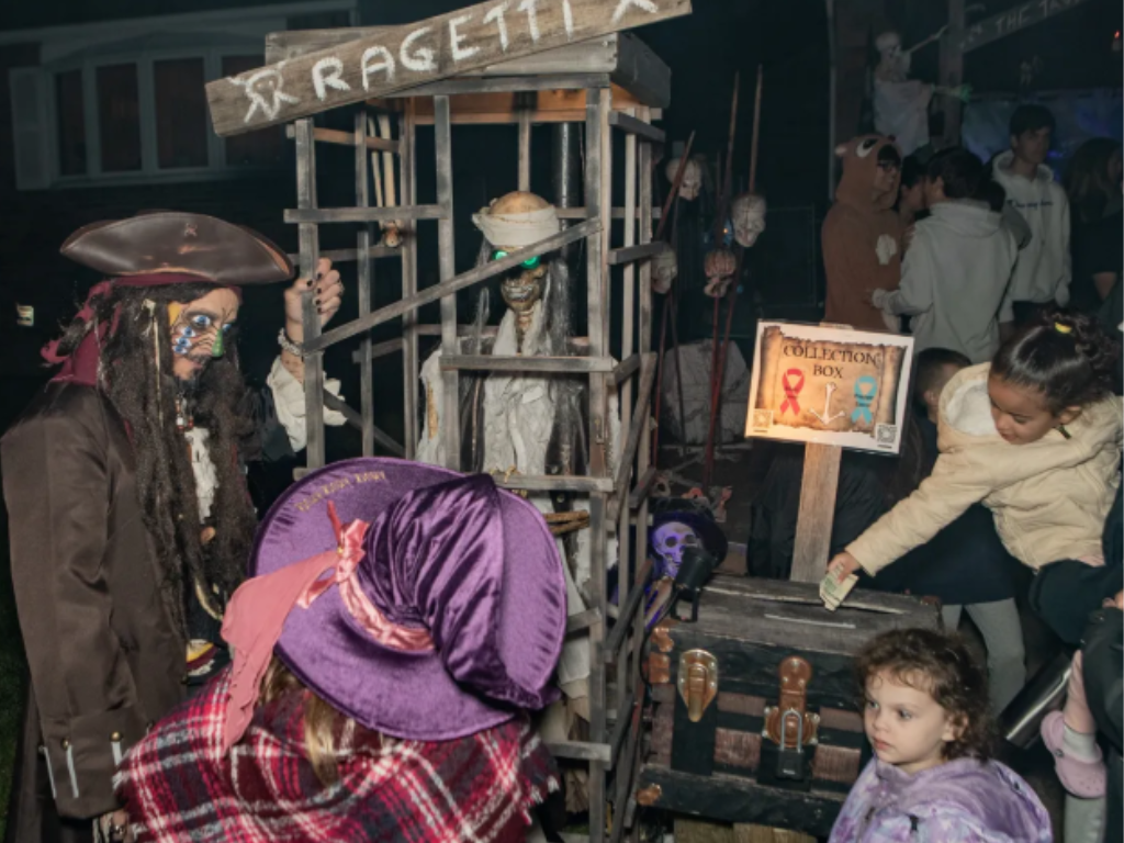 Ship Wreck Cove LI brought the spooky Halloween vibes to breast cancer awareness month by accepting donations at their haunted pirate Halloween display in Massapequa.